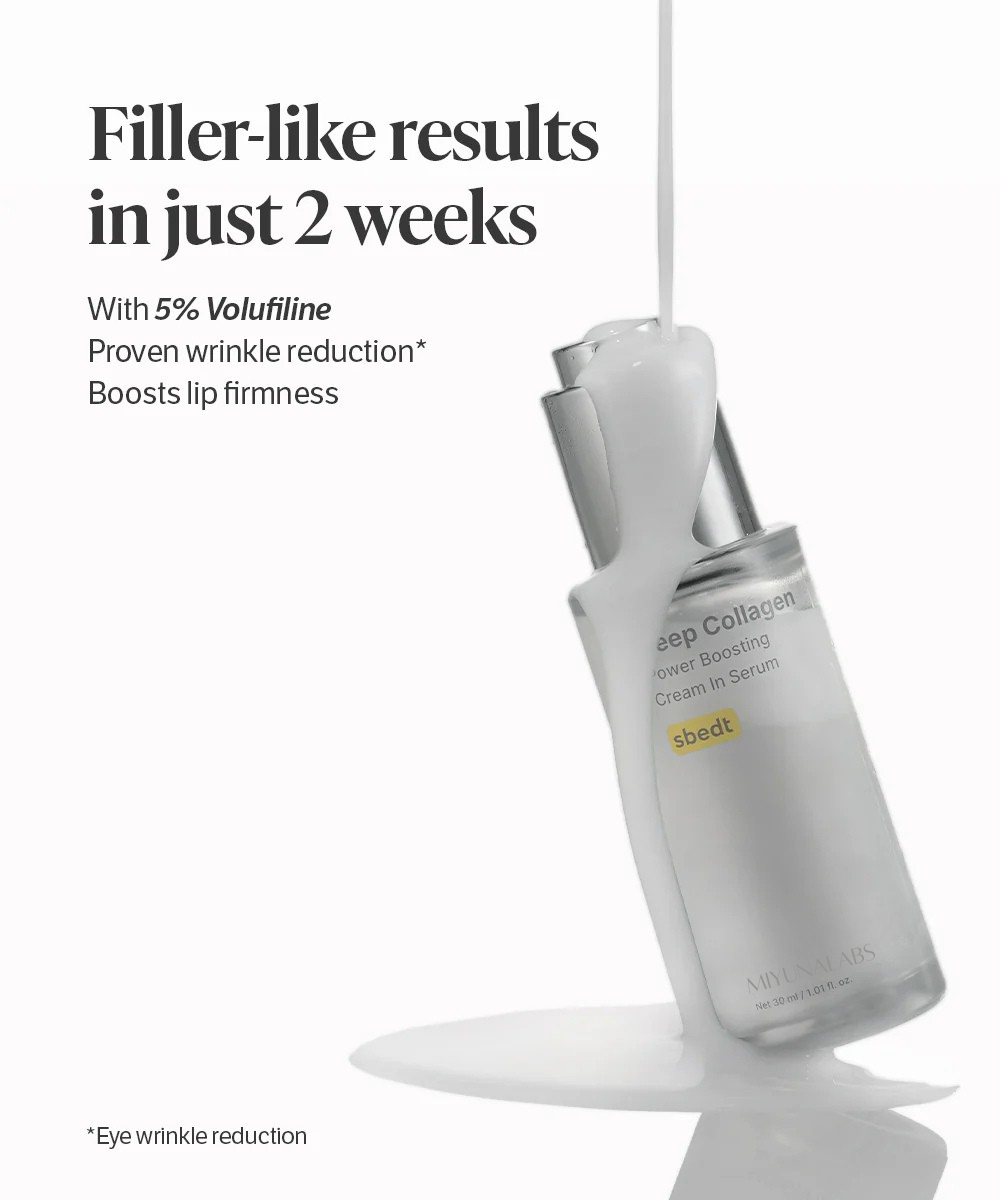 Volufiline™ is a clinically-proven ingredient that works beneath the skin's surface to add visible volume, plump fine lines, and improve elasticity. It helps firm and smooth the skin while softening the appearance of smile lines. Combined with our ultra-low molecular collagen, Volufiline™ delivers faster, more noticeable results for a youthful, lifted complexion.